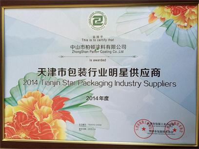 ?Zhongshan Patton coating company in 2014 won the best supplier title in Tianjin package industry.